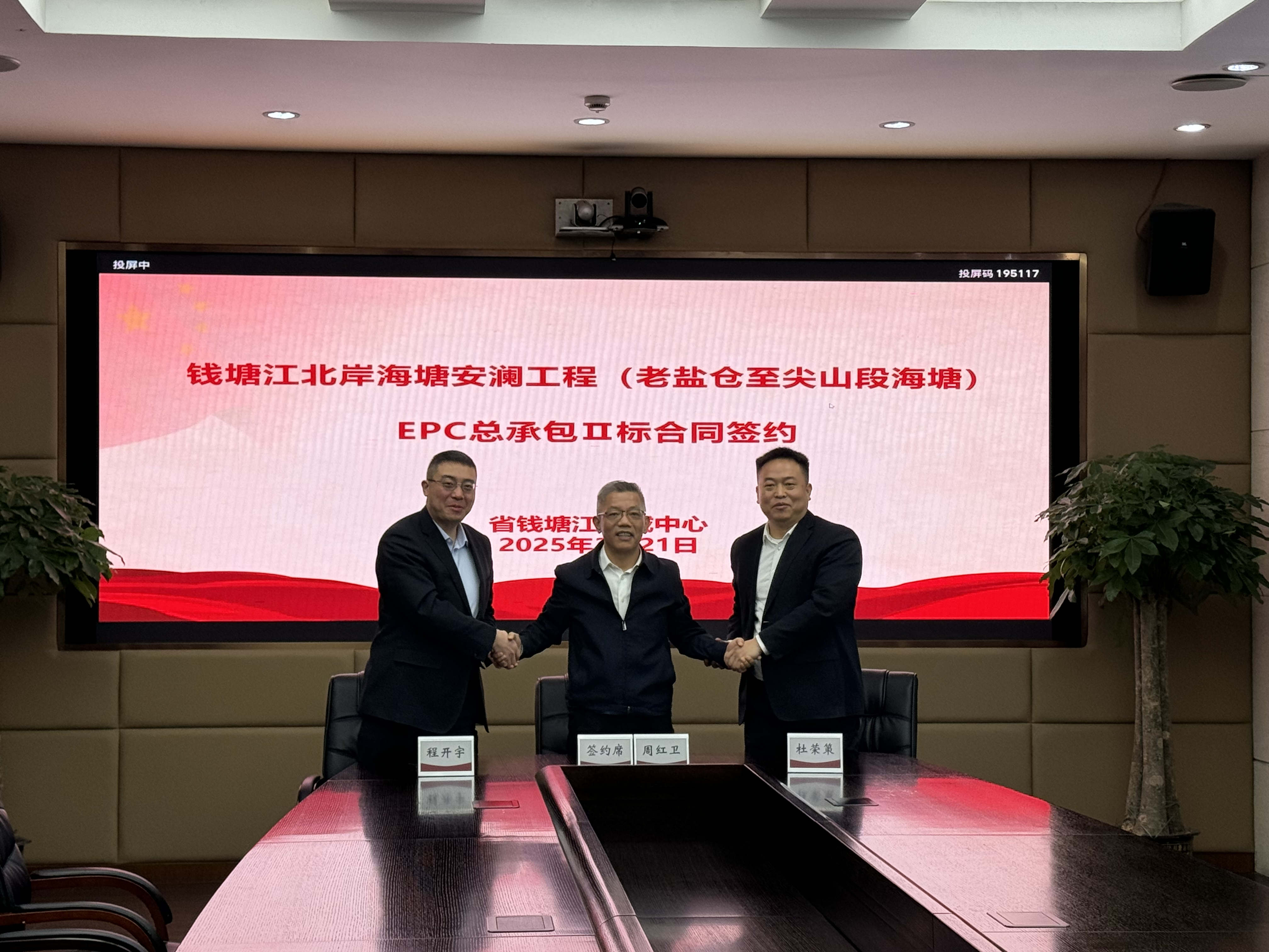 3月21日,錢塘江北岸海塘安瀾工程(老鹽倉至尖山段海塘)EPC工程總承包II標項目合同在錢塘江流域中心成功簽署。省錢塘江流域中心黨組書記周紅、海塘工程部和海寧管理站等相關部門領導出席簽約儀式,集團公司總經理杜榮策參加儀式。