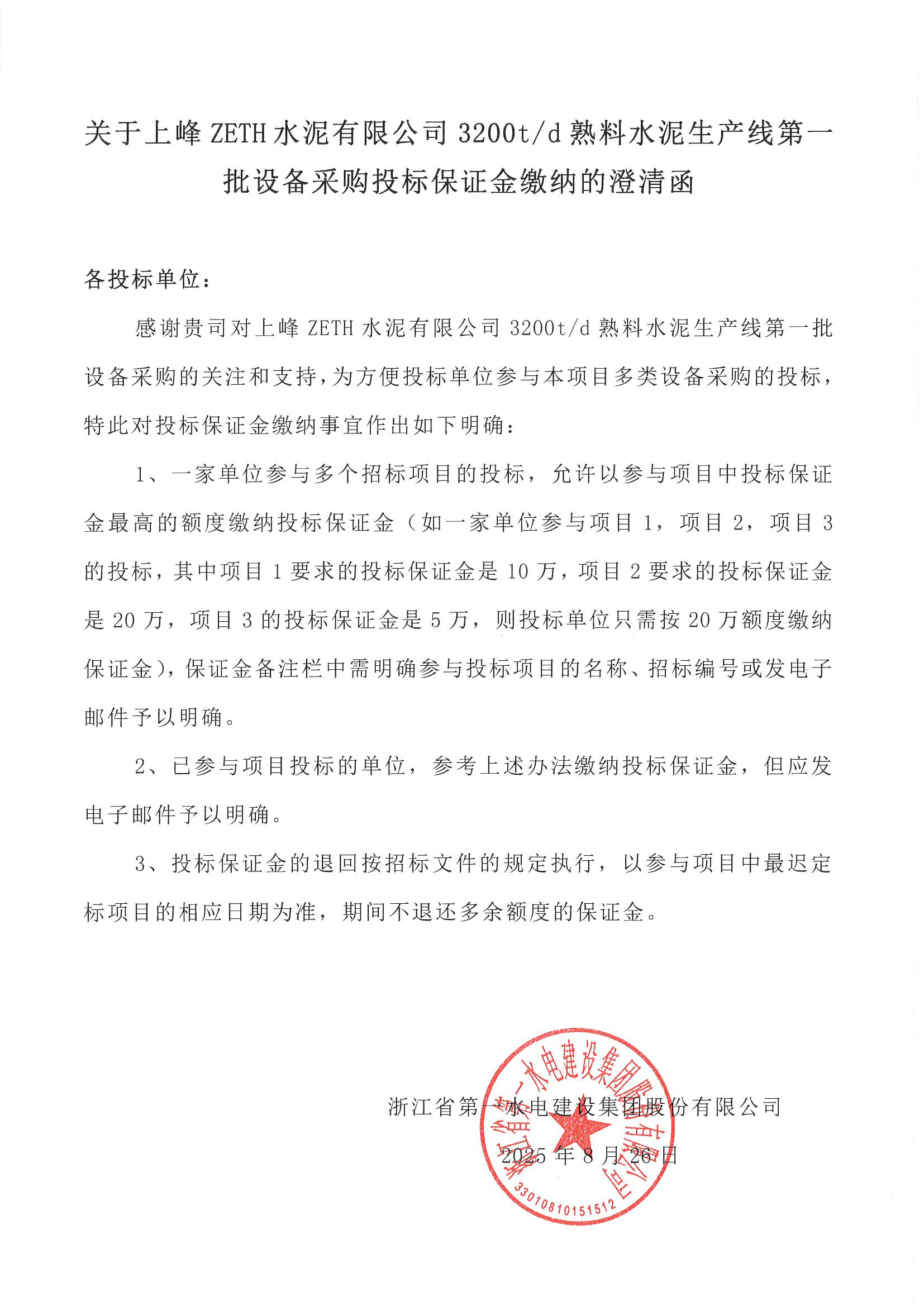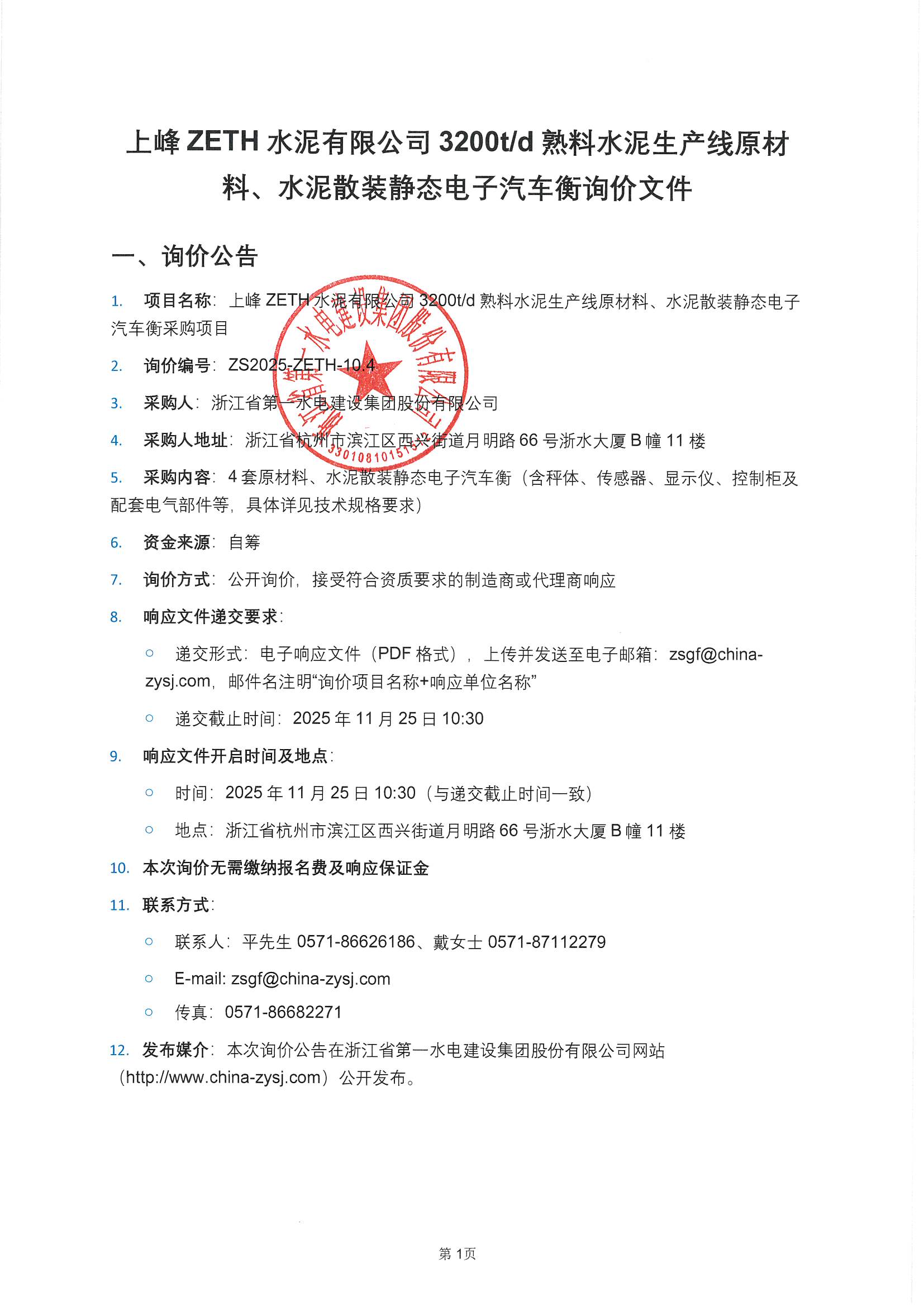上峰ZETH水泥有限公司3200t/d熟料水泥生產線原材料、水泥散裝靜態電子汽車衡詢價公告